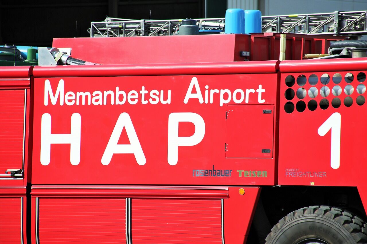 本車両はローゼンバウアー社の車両を帝国繊維が輸入・艤装しており、4×4はパンサーの中で最も小型モデルとなります。水槽6100L・薬液410L・消火剤200Lで、屋根には放水銃の他に三連梯子も確認できます。女満別空港は運営が北海道エアポート社に委託されたため、側面の文字が「北海道」→北海道エアポートを示す「HAP」に変更されています。