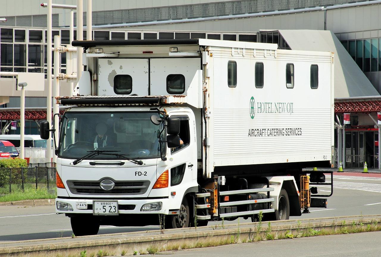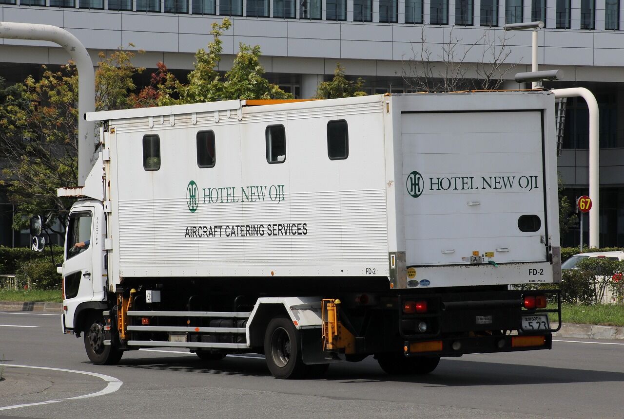 2021年11月18日 ホテルニュー王子 フードローダー(FD-2) 機内食事業部に所属するフードローダー。架装は犬塚製作所。5.5~7tシャシに架装した最大リフト荷重3000kg、最大積載量1650kgの中型モデルとなります。ホテルニュー王子は新千歳空港を発着する全ての航空機へ機内食を提供。国際線では1回のフライトで1600kgの荷物を積載することもあり、それを冷温状態に保持したまま地上5mの搬入口まで持ち上げることが可能です。新千歳のケータリングビルは国際線側にあることから、国内線ビルの前を走るフードローダーを頻繁に見ることができます。2021年8月 新千歳空港にて 「トラック」カテゴリの最新記事 < 前の記事次の記事 > コメント コメントフォーム 名前 コメント 記事の評価 リセット リセット 顔 星 情報を記憶 コメントを投稿する