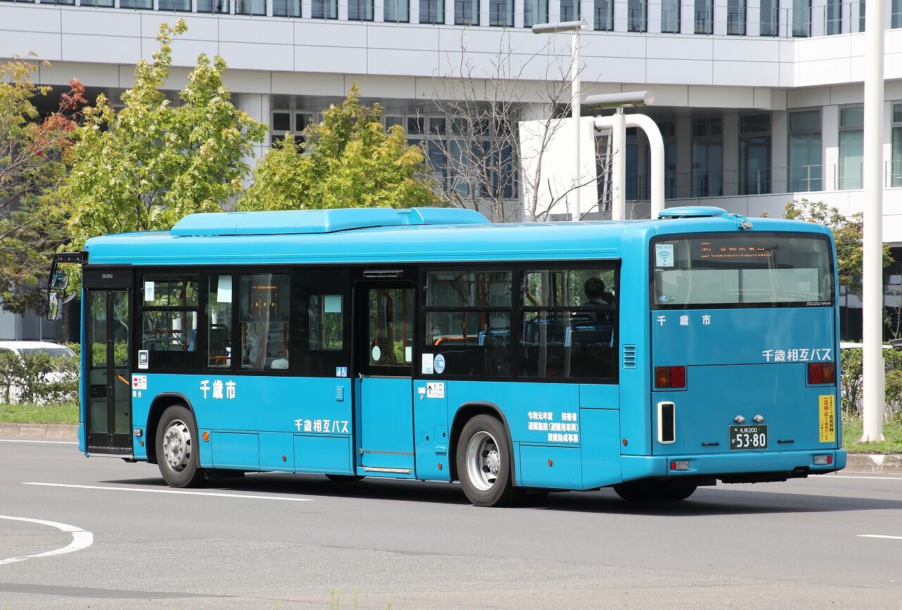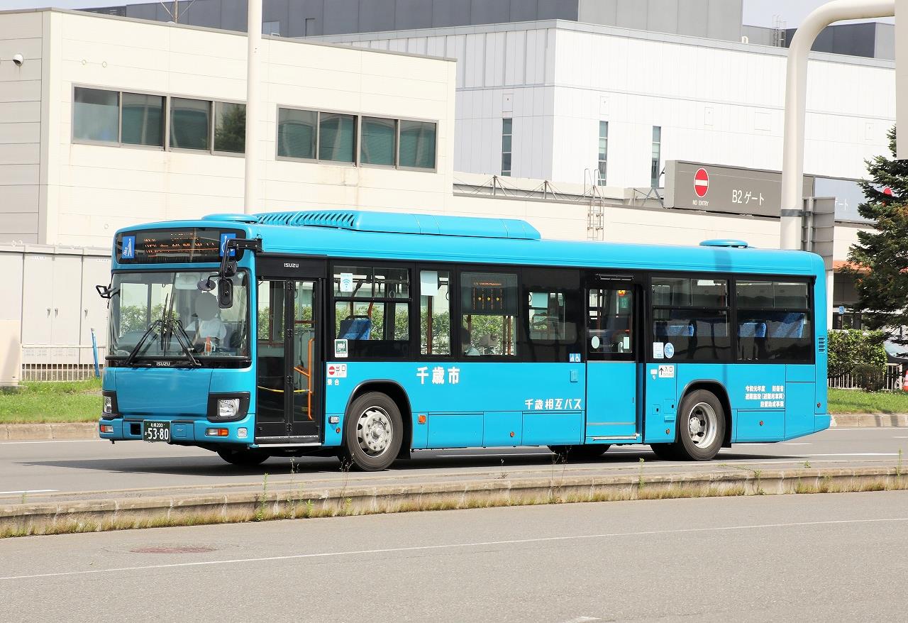 2020年2月に導入されたエルガ。千歳の本社営業所に所属しています。防衛省による千歳飛行場周辺避難整備設置助成事業の一環で千歳市が所有、千歳相互観光バスへ貸与されている「災害時避難バス」。2018年3月導入の4920(初号車)、2019年3月導入の5162・5163に続く導入で、今回5379と5380が入りました。