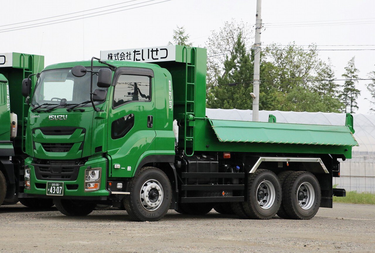 2024年08月05日 たいせつ 4307号車(ダンプカー) 女満別の本社営業所に所属するギガダンプ。架装は新明和工業。最大積載量8800kgのGVW20t級ダンプです。一時期はGVW25t級のロングダンプを大量導入していましたが、近年はGVW20t級に回帰しているようです。2023年5月 たいせつ本社営業所にて 「トラック」カテゴリの最新記事 < 前の記事次の記事 > コメント コメントフォーム 名前 コメント 記事の評価 リセット リセット 顔 星 情報を記憶 コメントを投稿する