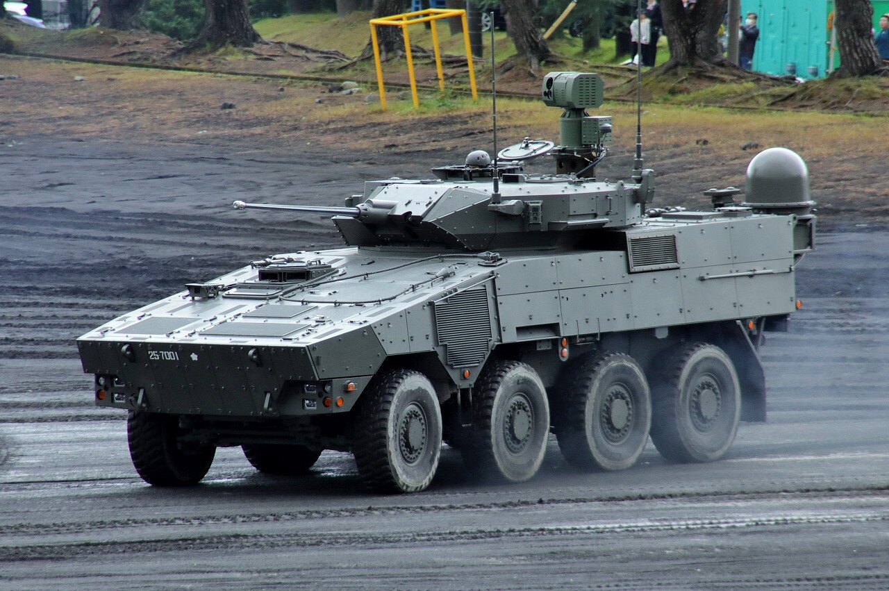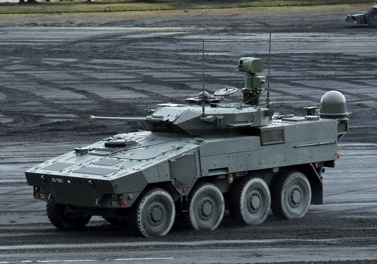2025年11月03日 25式偵察警戒車 富士駐屯地の富士学校機甲科部に配備される25式偵察警戒車(25RCV)。16式機動戦闘車の車体をベースとした8輪駆動の装輪偵察戦闘車で、24式装輪装甲戦闘車や24式機動120mm迫撃砲と同じ共通戦術装輪車の一つです。三菱重工が開発しており、令和7年の富士総合火力演習にて25式偵察警戒車と命名され、部隊使用承認を受けたことが発表されました。87RCVの後継として120両程度の取得が予定されており、2025年度予算では6両が91億円で調達されましたので、取得(部隊配備)は27年度でしょうか。本車両は試作1号機。乗員5名で、主武装にMk.44 30mm機関砲、車体後部に伸縮式の偵察マスト、通信用アンテナドームを装備します。25-7001 富士学校機甲科部(富士)2025年10月 富士駐屯地創立記念行事にて 「陸上自衛隊」カテゴリの最新記事 < 前の記事次の記事 > コメント コメントフォーム 名前 コメント 記事の評価 リセット リセット 顔 星 情報を記憶 コメントを投稿する