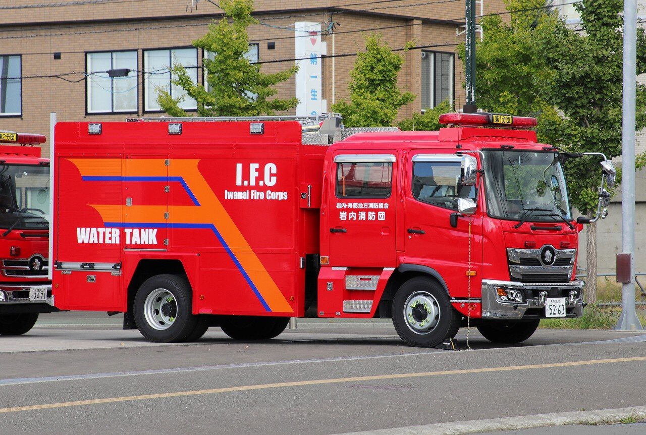 2025年11月29日 岩内消防団 水槽付きポンプ車(第1分団車) 令和2年度(2020年12月)に導入されたCD-Ⅱ型ポンプ車。第1分団に配備されています。前任車の2倍以上となる4000L水槽を搭載するのが特徴で、屋根にはは照明装置(ナイトスキャンチーフ)を装備します。岩内消防団・第1分団 CD-Ⅱ型ポンプ車 コールサイン不明2024年9月 岩内消防署にて 「北海道の消防」カテゴリの最新記事 < 前の記事次の記事 > コメント コメントフォーム 名前 コメント 記事の評価 リセット リセット 顔 星 情報を記憶 コメントを投稿する