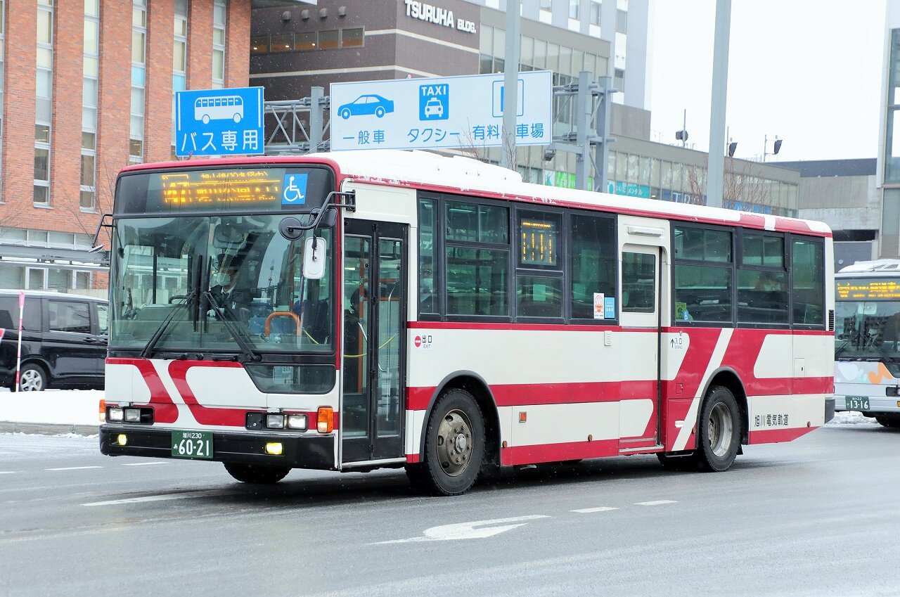 2026年02月27日 旭川電気軌道(路線車) 6021号車 共栄営業所に所属する2008年式のエアロスター・ワンステ。元北鉄金沢バス「38-809」で、2022年8月に運用を開始しました。PKG-当時はUDを入れていたため、あさでん初のPKG-MPとなります。車内の座席配置やモケットは北鉄時代のままとなっています。旭川230あ6021 PKG-MP35UM(2008年式)2025年12月 旭川駅前バスターミナルにて 「旭川電気軌道」カテゴリの最新記事 < 前の記事次の記事 > コメント コメントフォーム 名前 コメント 記事の評価 リセット リセット 顔 星 情報を記憶 コメントを投稿する