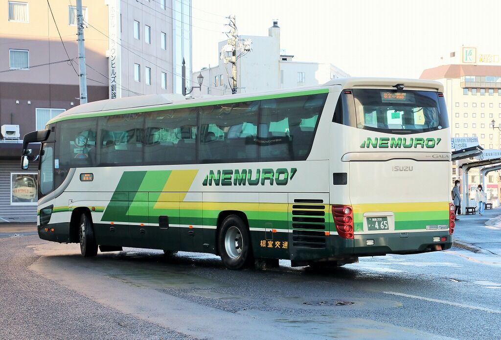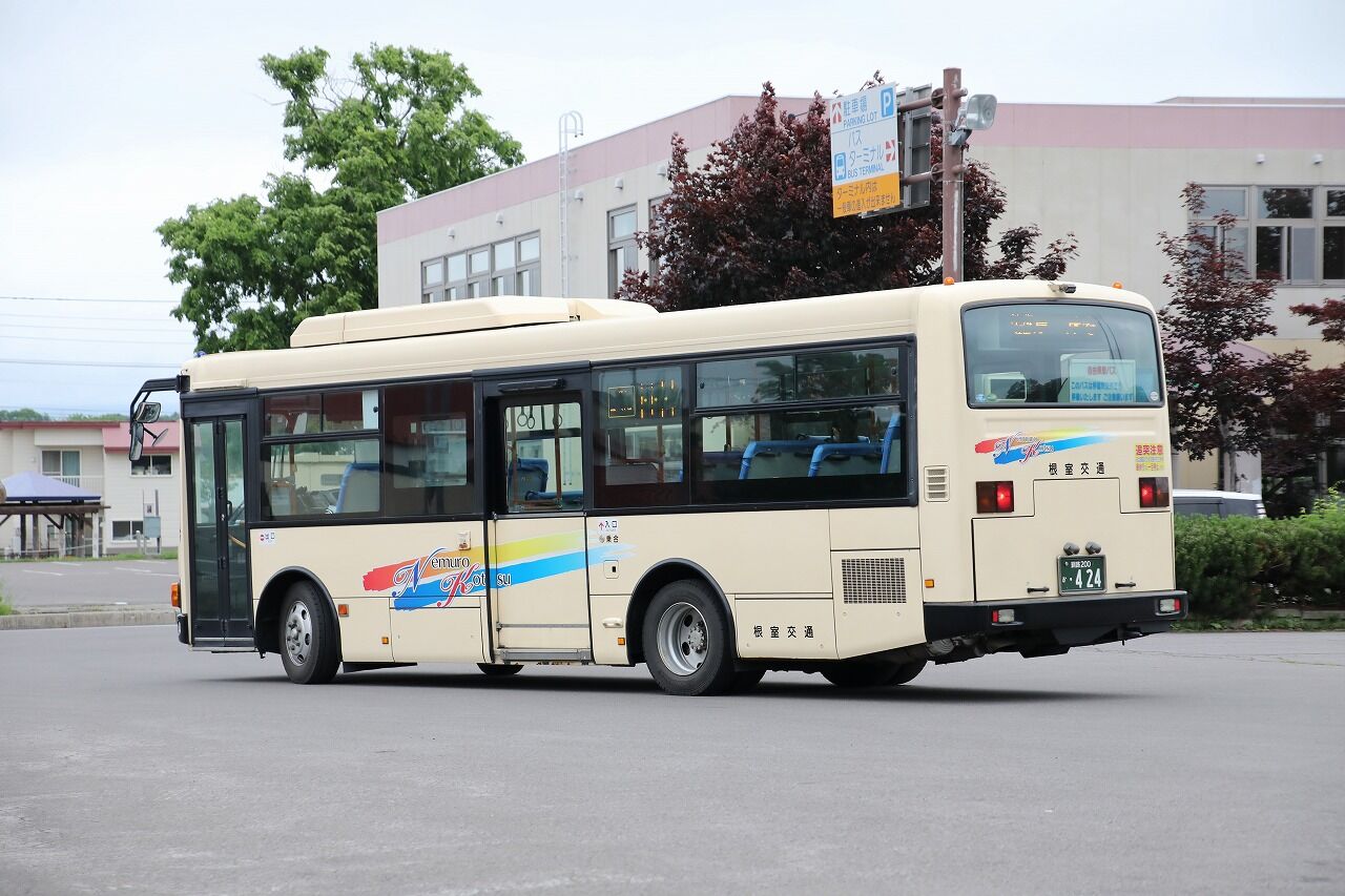有磯営業所に所属する2003~05年式のセレガR-GD。元近鉄の高速車で、2016年夏に北都交通へ移籍。主にオーロラ号(札幌~根室)で活躍した後、2018年夏に根室交通へ再移籍しました。