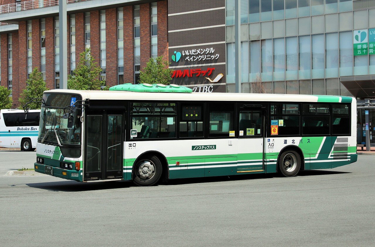 2024年03月14日 道北バス(路線車) 11号車 2009年2月に導入された自社発注のブルーリボンシティハイブリッド。旭川営業所に所属しています。「旭川230い10」と2台が導入された車で、ホイールベース5.2mの長尺車となります。車内は前方が1人掛けの都市型レイアウト。「230あ9」、「230い13」と共に層雲峡線でも運用されています。旭川230う11 BJG-HU8JMFP(2009年式)2022年7月 旭川駅前バスターミナルにて