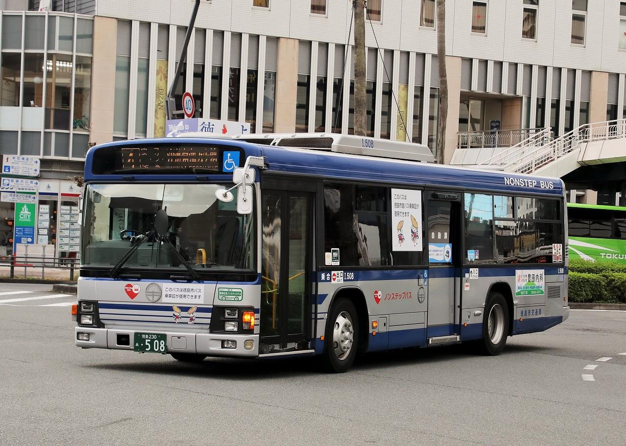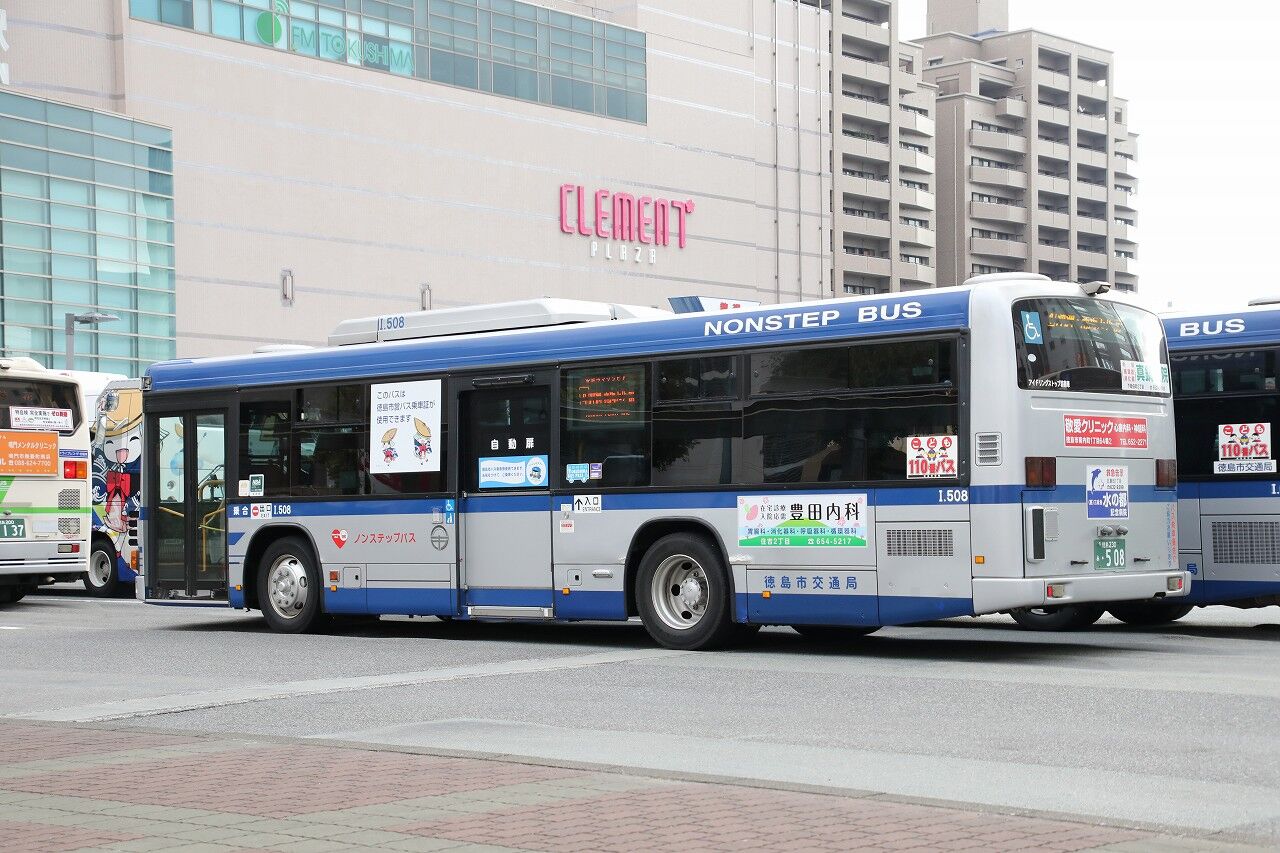 2022年11月06日 徳島市交通局 I.508号車 2009年3月に導入された自社発注のエルガ・ノンステ。徳島市交通局20台中唯一の大型車で、AT車です。車内前方がロングシートという交通局お気に入りの仕様。2028年度を持って廃止される予定であることから、交通局最後の大型車となることでしょう。徳島230あ508 局番I.508 PDG-LV234L2(2009年式)2022年10月 徳島駅にて