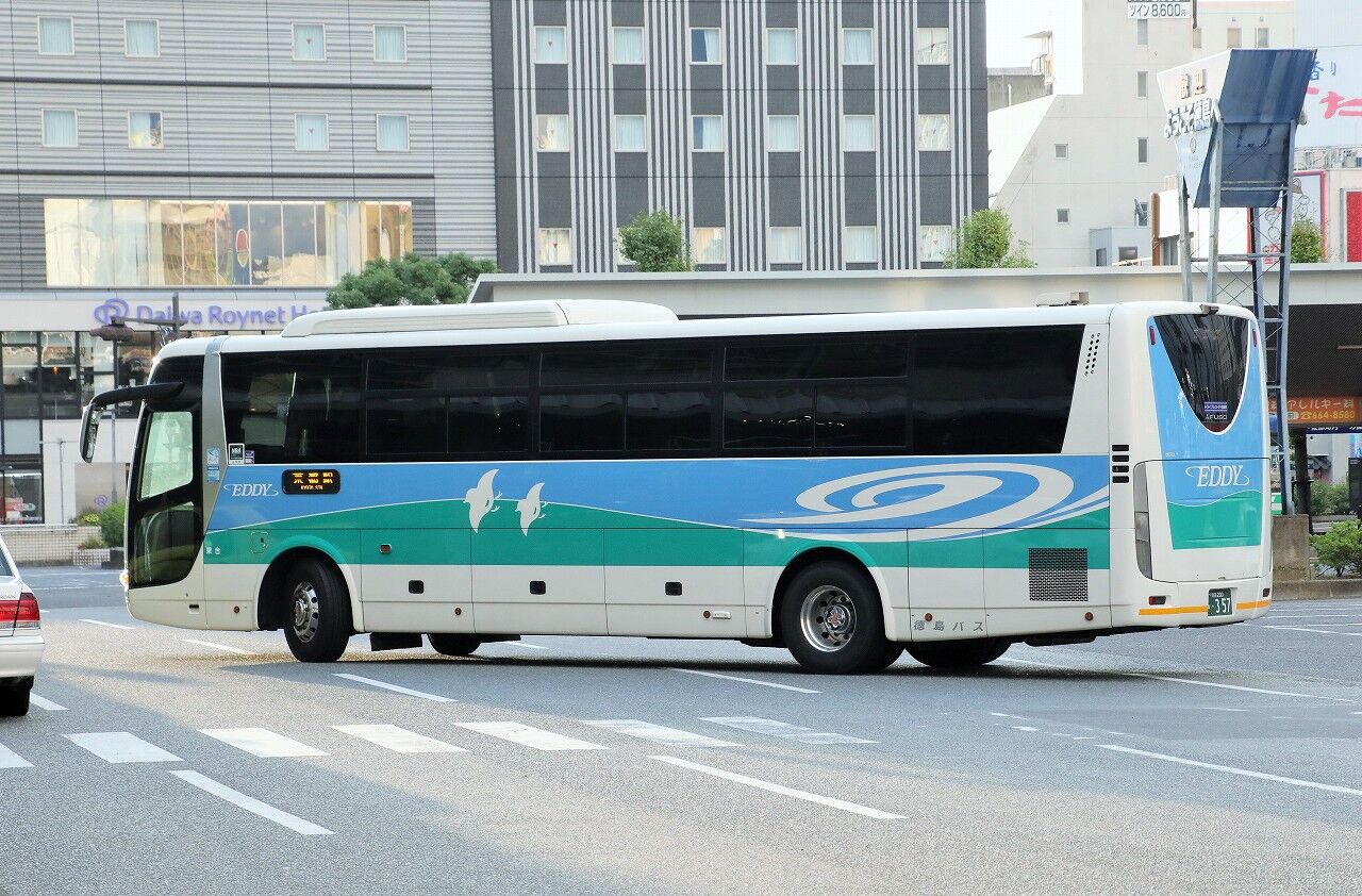 2022年11月17日 徳島バス(高速車) 357号車 2012年4月に導入されたエアロエース。北島営業所に所属しています。久しぶりに導入されたふそうの高速車で、355・356・357の3台が導入されました。車内は後部トイレ付き、左側9列+右側11列の40名仕様。関西方面や島内路線でも使われており、この日は京都行の運用でした。徳島200か357 LKG-MS96VP(2012年式)2022年10月 徳島駅にて