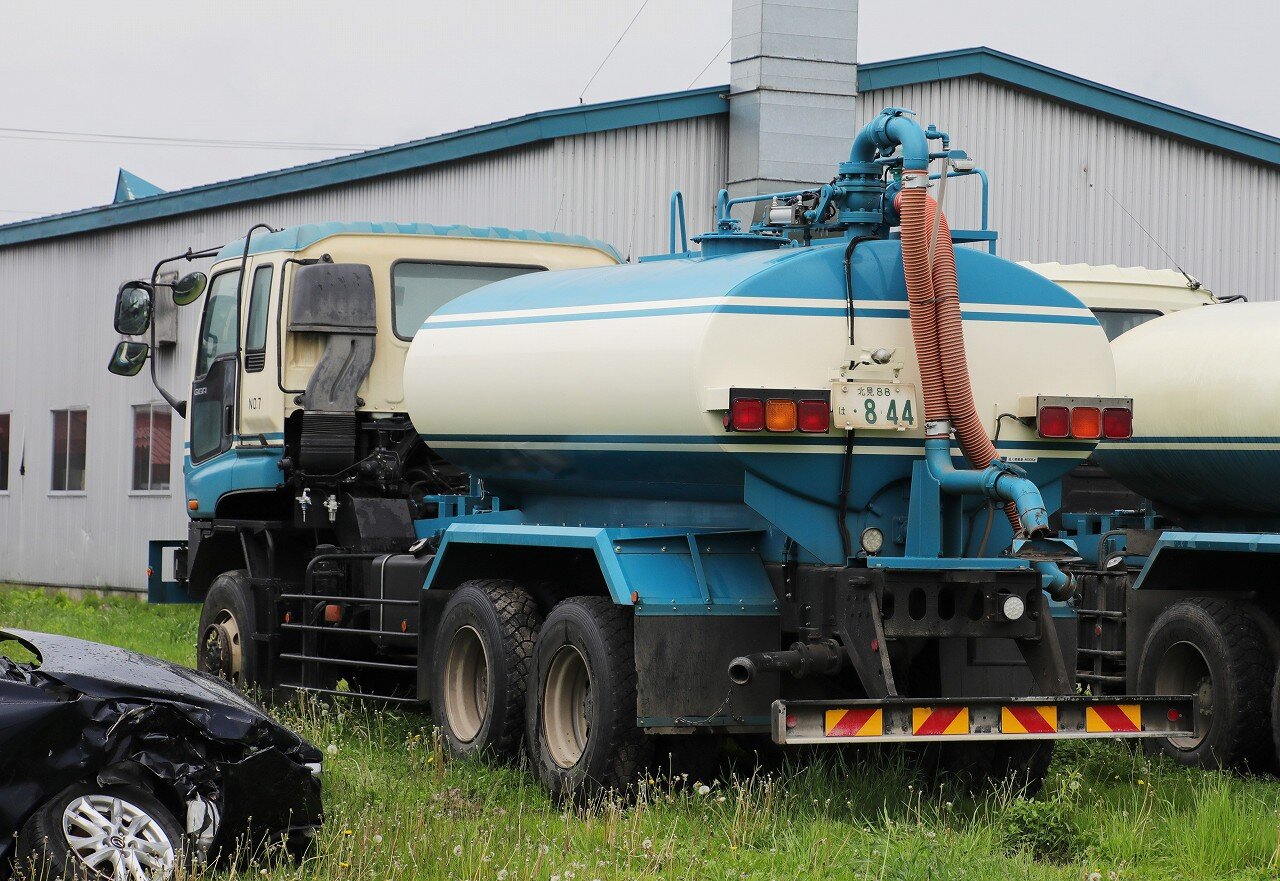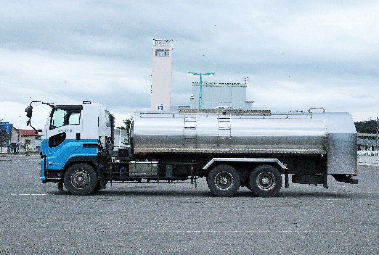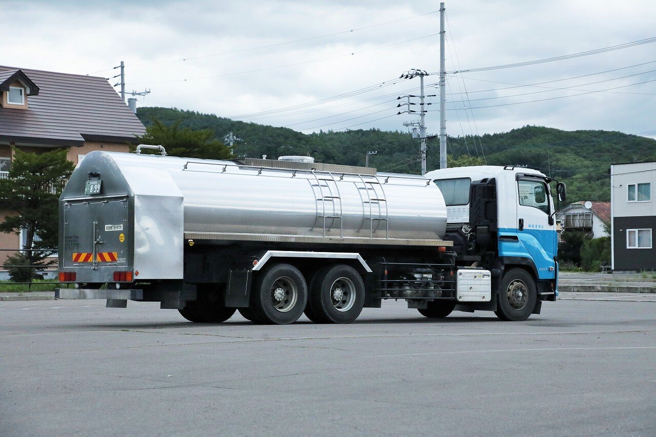 JA清里町が所有するスラリーローリー。販売は農業系特殊車両を得意とする東北海道いすゞ自動車環境事業部、架装は極東開発工業子会社の振興自動車。タンク容量8600L、最大積載量8600kg、積載品は廃液(デカンター排水)です。