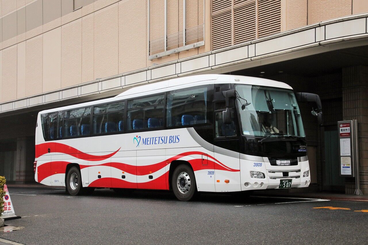 2022年05月21日 名鉄バス(高速車) 3909号車 2019年8月に導入されたセレガハイデッカー。3702以来、豊田に2年振りに投入された高速車で、3908・3909が投入されました。貸切色の投入としては、26代以来13年振りのこと。車内は補助席(11席)付き12列シート、定員60名。名古屋・豊田線や空港線で活躍。2020年4月、コロナで空港線が吹き飛んで運用を失ったこともあり、春日井の66代を置き換えるため転属しています。ただし、側面の所属表記が豊田のままのため、貸出扱いの可能性もあります。豊田200か507(現春日井200か138) 3909 2TG-RU1ASDA(2019年式)2020年2月 豊田市駅にて