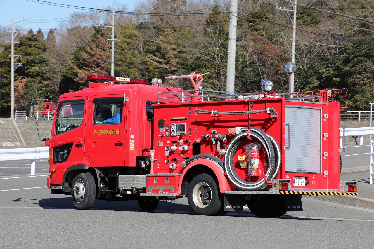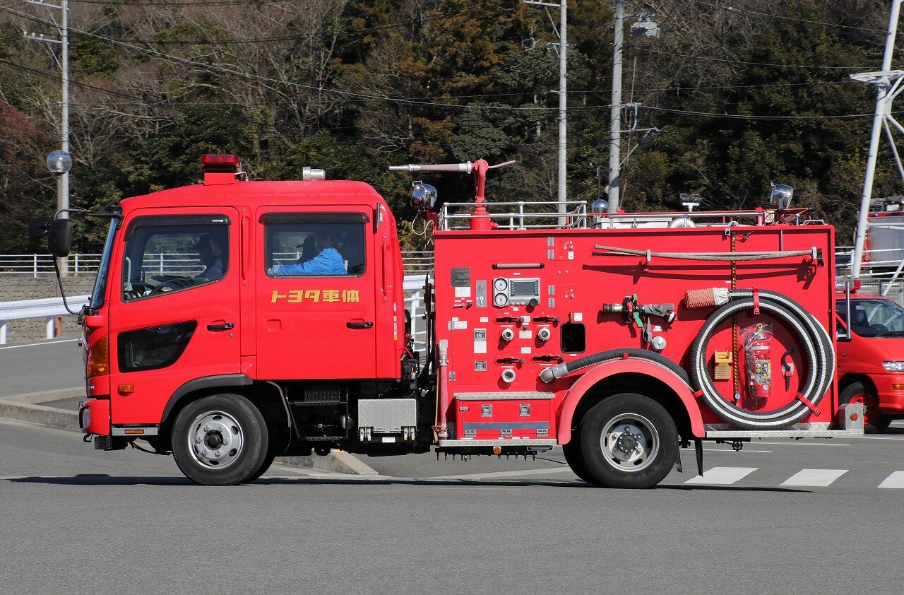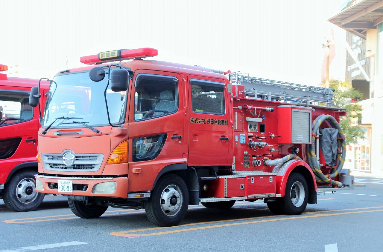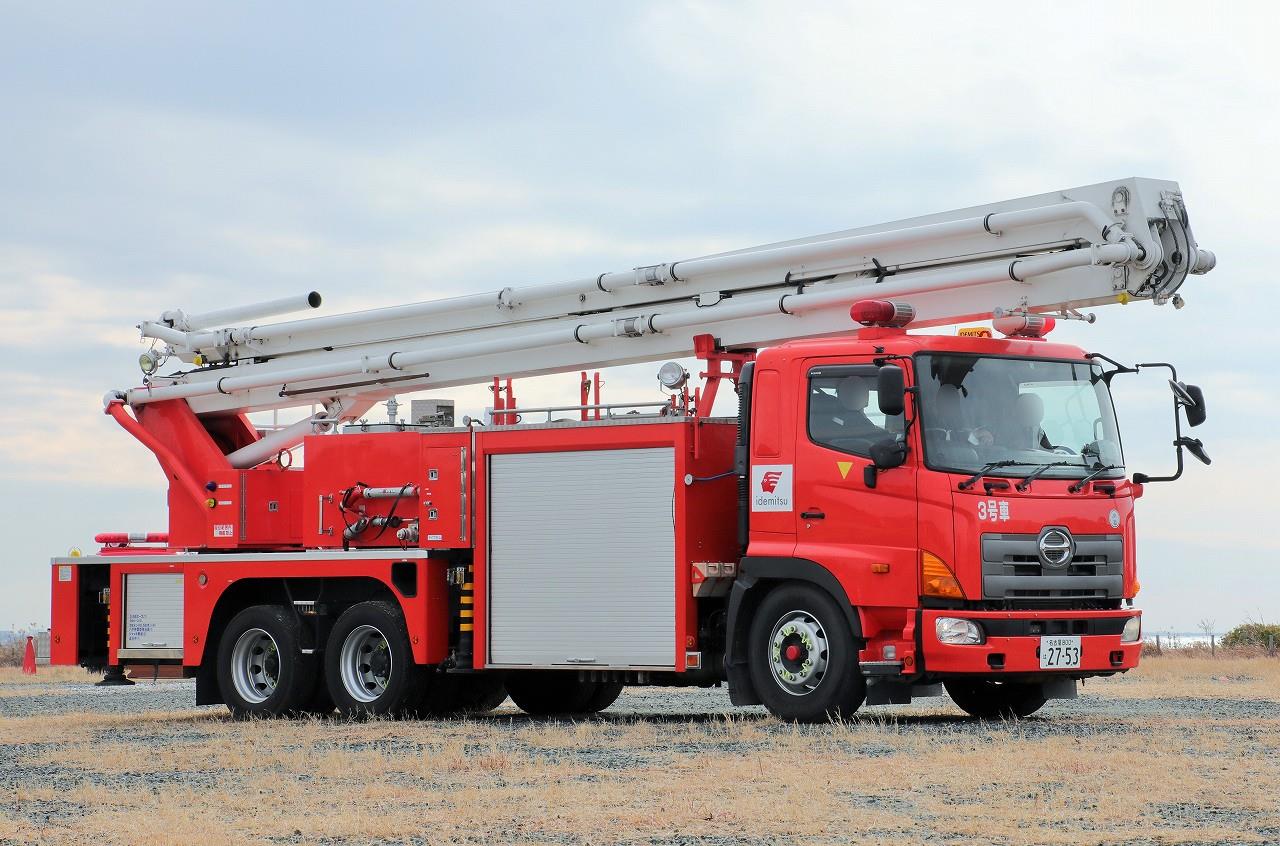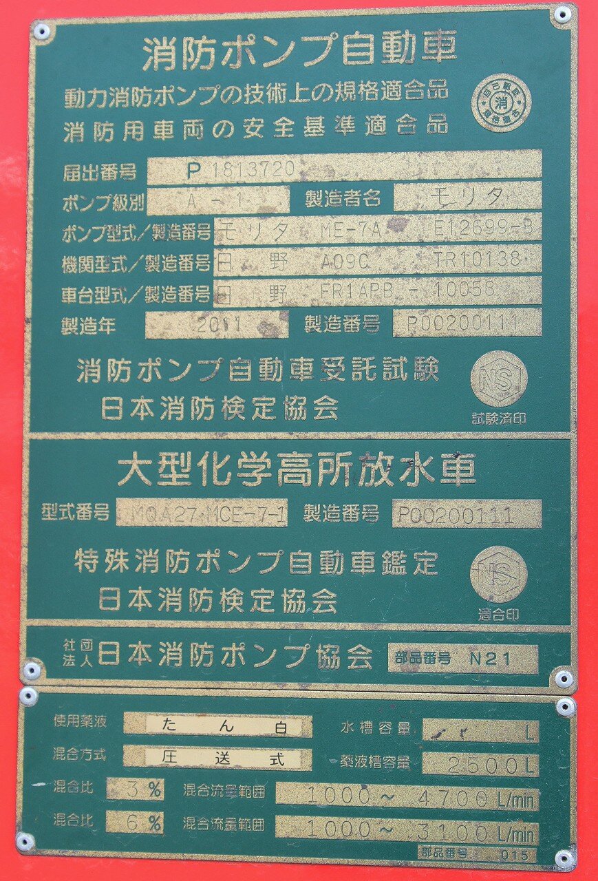 架装はモリタ。ブームは最大27mの高さまで伸ばす事が可能な2節屈折式で、日本ドライケミカルのOEM品を使用しています。ポンプは強力なA-1級で、最大射程距離70m。2000Lの消火薬液と薬液混合装置を装備することで、化学車の役目も担います。薬液室側面にはYONE製低反動泡ノズル・低反動水ノズルを搭載しています。
