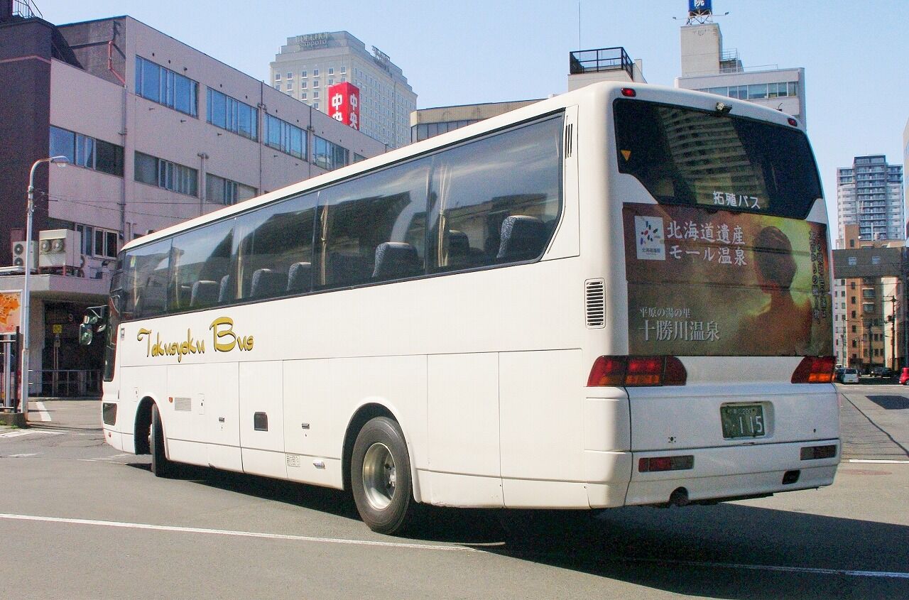 車内は補助席なし11列シート、助手席が1人掛けで定員44名。シフトはこの代では珍しいロッド式。ワンマン機器は搭載されず、移籍後にスモークフィルムが貼られました。平日朝は暁学園大山田線の送迎を終えた後に、イオンモール東員の従業員送迎で活躍。休日はそのままイオンモール東員の送迎に入る運用が組まれています。